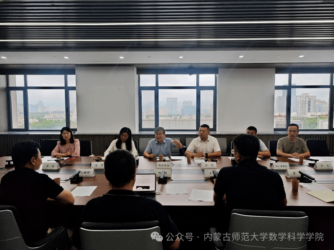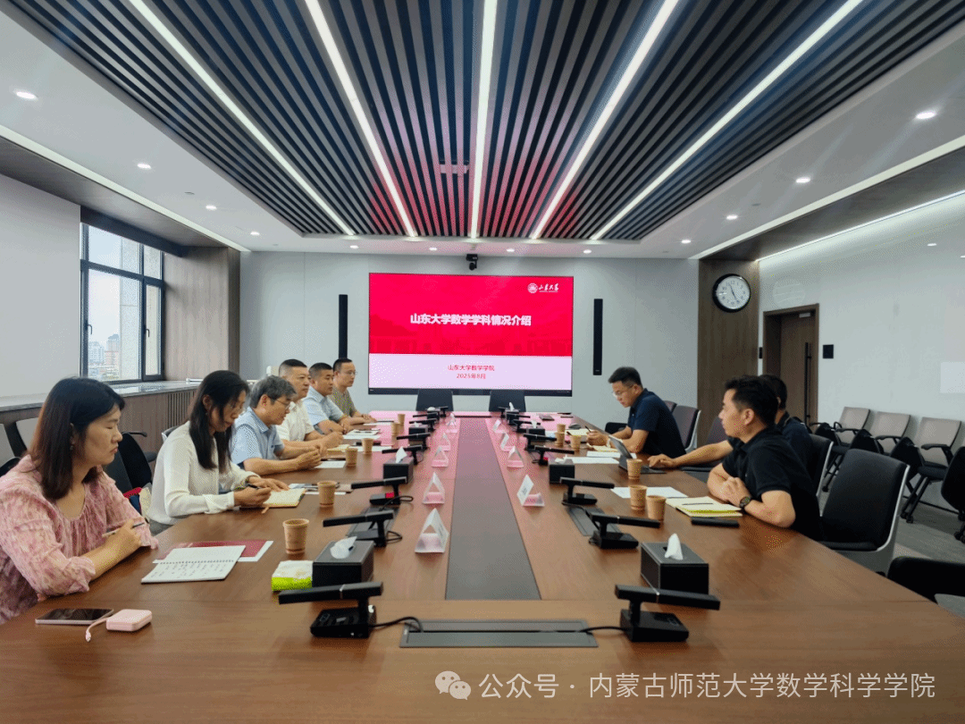 为学习山东大学数学一流团队建设、山东国家应用数学中心建设及高水平人才培育的先进经验与成功做法,2025年8月8日-9日由公司教育部重点实验室主任阿拉坦仓教授带队,公司党委书记张伟、副经理包霞、计算数学方向负责人布仁满都拉、应用数学方向负责人周艳、基础数学方向负责人耿俊赴山东大学拜会山东大学党委书记任友群和副董事长刘建亚,并到山东大学数学公司和山东国家应用数学中心开展调研交流。山东大学数学公司党委书记王光辉、常务副经理胡锡俊、副经理王鹏辉、山东国家应用数学中心执行委员会副主任陈增敬、济南应用数学高等研究院综合事业部部长任婷婷和数学公司办公室主任霍睿等参加了此次调研活动。