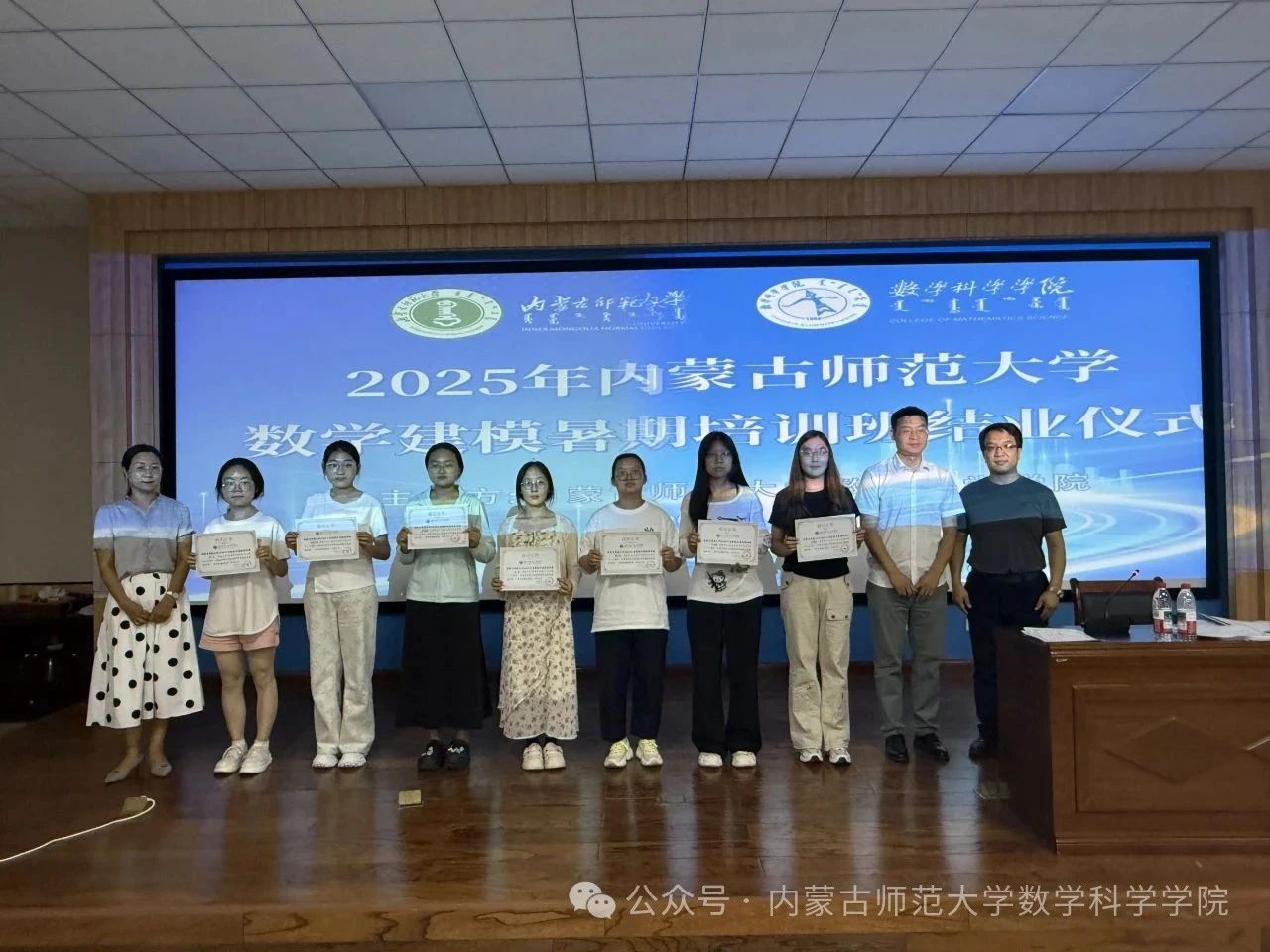 7月18日,结业仪式如期举行。太阳成集团tyc122ccvip副经理萨和雅主持仪式并作总结发言,他对全体学员在集训期间的辛勤付出和取得的进步给予了充分肯定,勉励大家将此次所学作为起点,在数学建模学习和实践创新的道路上继续坚定前行。仪式上,吉林财经大学木仁教授、公司萨和雅教授和陈阿茹娜老师共同为参训学员们颁发了结业证书。