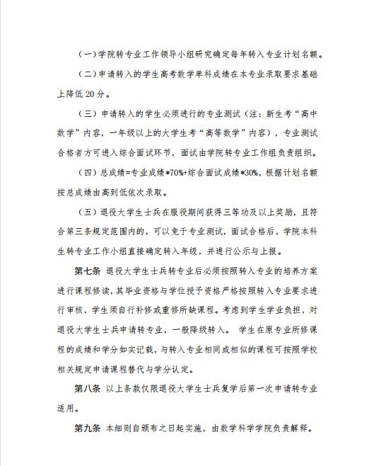 7.总成绩=专业成绩*70%+综合面试成绩*30%,按总成绩由高到低依次录取;退役本科生转专业按总成绩由高到低单独依次录取。