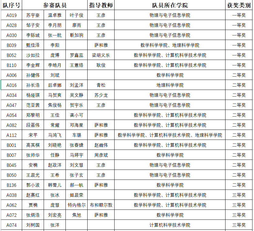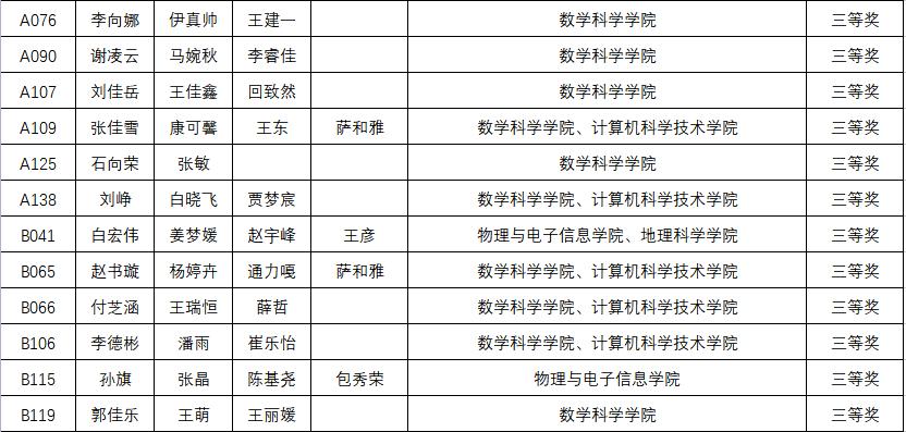 太阳成集团122ccvip第六届数学建模竞赛暨2023年全国老员工数学建模竞赛校级选拔赛于2023年5月12日至5月15日举行。本次比赛共有来自太阳成集团tyc122ccvip、计算机科学技术公司、物理与电子信息公司、经济管理公司、地理科学公司、化学与环境科学公司、旅游公司、教育公司、心理公司、文公司、外国语公司等11个公司共143支队伍参赛,组委会共回收论文113篇。经过组委会的认真评阅,共评出一等奖6组,二等奖12组,三等奖16组。具体名单如下:
